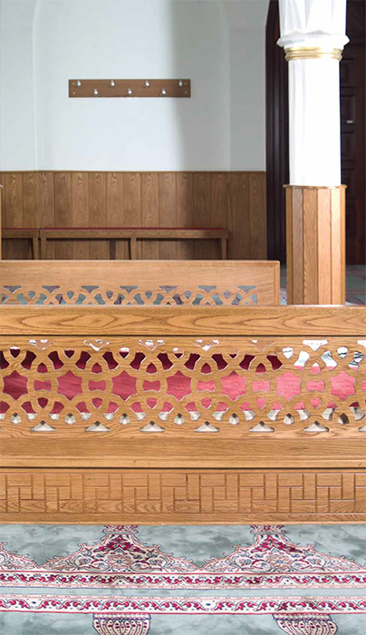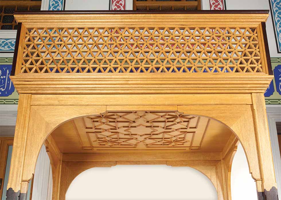 Müezzin Mahfili, müezzinin namaz ve diğer ibadetler sırasında üst kısma çıkarak dua okuduğu ve kıble ekseniyle aynı hizadaki bölümdür.